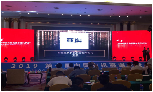 2019年7月19日~20日,由中國農業機械學會、農業裝備產業技術創新戰略聯盟、國家農機具質量監督檢驗中心主辦,中聯重科股份有限公司、蕪湖市三山區人民政府協辦的“2019第七屆中國農機高端論壇暨2018中國農業機械年度TOP50+頒獎盛典”在安徽省蕪湖市召開。
