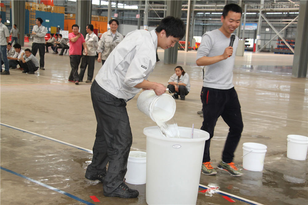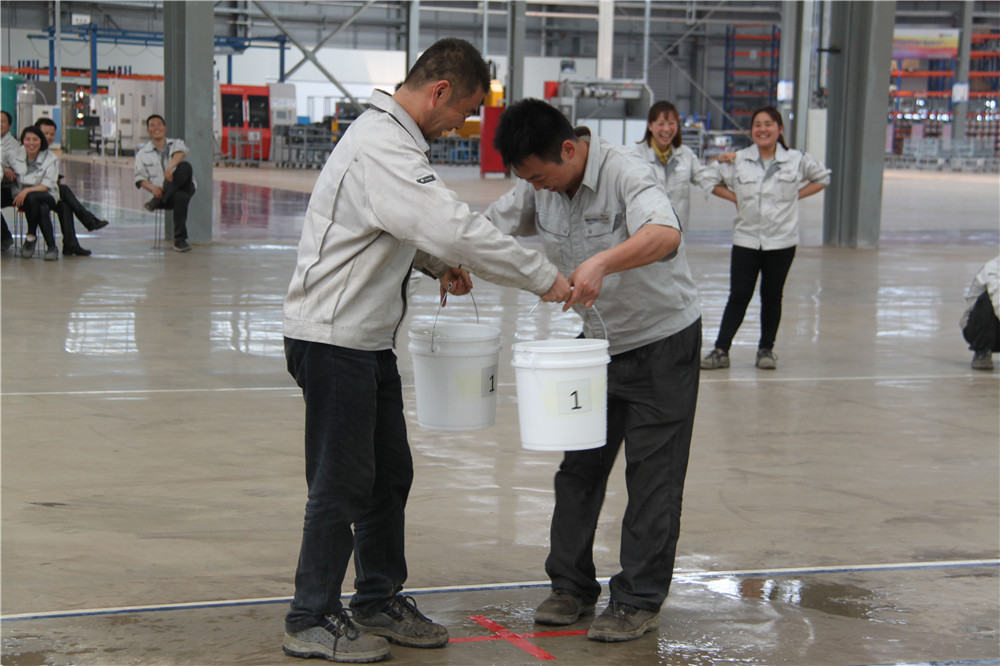 下午13:30在運動場出現了擺放有序的水桶,這是我們的第二項活動:精益運輸大接力,取水點的距離分別大于等于10米,每個桶分別裝滿10L水,每組隊員是五個人,要在120秒內完成大桶水量的收集,超過120秒的隊員淘汰出局,在規定的時間內,水量收集多者獲勝,抽簽決定出場順序,這項活動是讓員工明白精益化生產體系的精髓所在之處;減少過程浪費,實現低成本的快速交付,滿足客戶的同時,做到細節控制,提升產品使用價值,提升公司盈利空間。比賽開始了只見隊員雙手提起20L的水往下一站的隊友那里送,中間會有灑水會很累,但是每個人都為了自己隊伍的榮譽拼盡全力向終點奔去,旁邊的隊友為他們加油、吶喊,最終自焊獲得第一名。