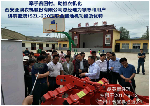 為支持西部貧困地區農機化發展,2017年6月13日,中國農業機械化協會聯合西安亞澳、甘肅福祥等五家國內知名農機裝備企業為甘肅省永登縣通遠鄉團莊村捐贈了價值約50萬元的農機產品和現金。