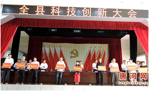 9月12日上午,唐河縣召開科技創新大會。會議主要任務是全面貫徹創新、協調、綠色、開放、共享發展理念,落實國家、省、市科技創新大會、科技工作會議精神,表彰先進,總結前一時期工作,對下一階段工作進行再動員、再部署。