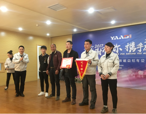 2017年12月29日下午13:00,亞澳南陽農機有限責任公司“2017感謝有你,2018攜手同行”主題年會在二樓多功能廳拉開了帷幕,公司領導親臨觀看演出,到場的全體員工更是從活動中感受到了濃濃的節日氛圍。本次年會精彩紛呈,高潮迭起。融合了朗誦、歌曲、小品、話劇、三句半、游戲等各方面元素。整個年會氣氛活躍,讓員工在欣賞節目的同時,收獲了一份感動,一份與企業心心相連的默契。