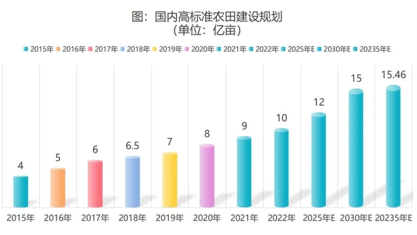 關(guān)于提高耕地質(zhì)量的要求:最值得關(guān)注的是高標準農(nóng)田建設(shè),這是本世紀以來國家對農(nóng)業(yè)基礎(chǔ)設(shè)施建設(shè)下的決心最大,投入資源最多的一項政策,2022年已經(jīng)建成了10億畝高標準農(nóng)田的政策。
